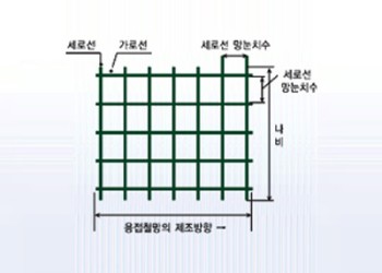 용접철망 일반용접철망이란철선을 직교하여 기하학적으로 배열하고 그들의 교점을 전기저항 용접하여 격자모양으로 만들며 ..